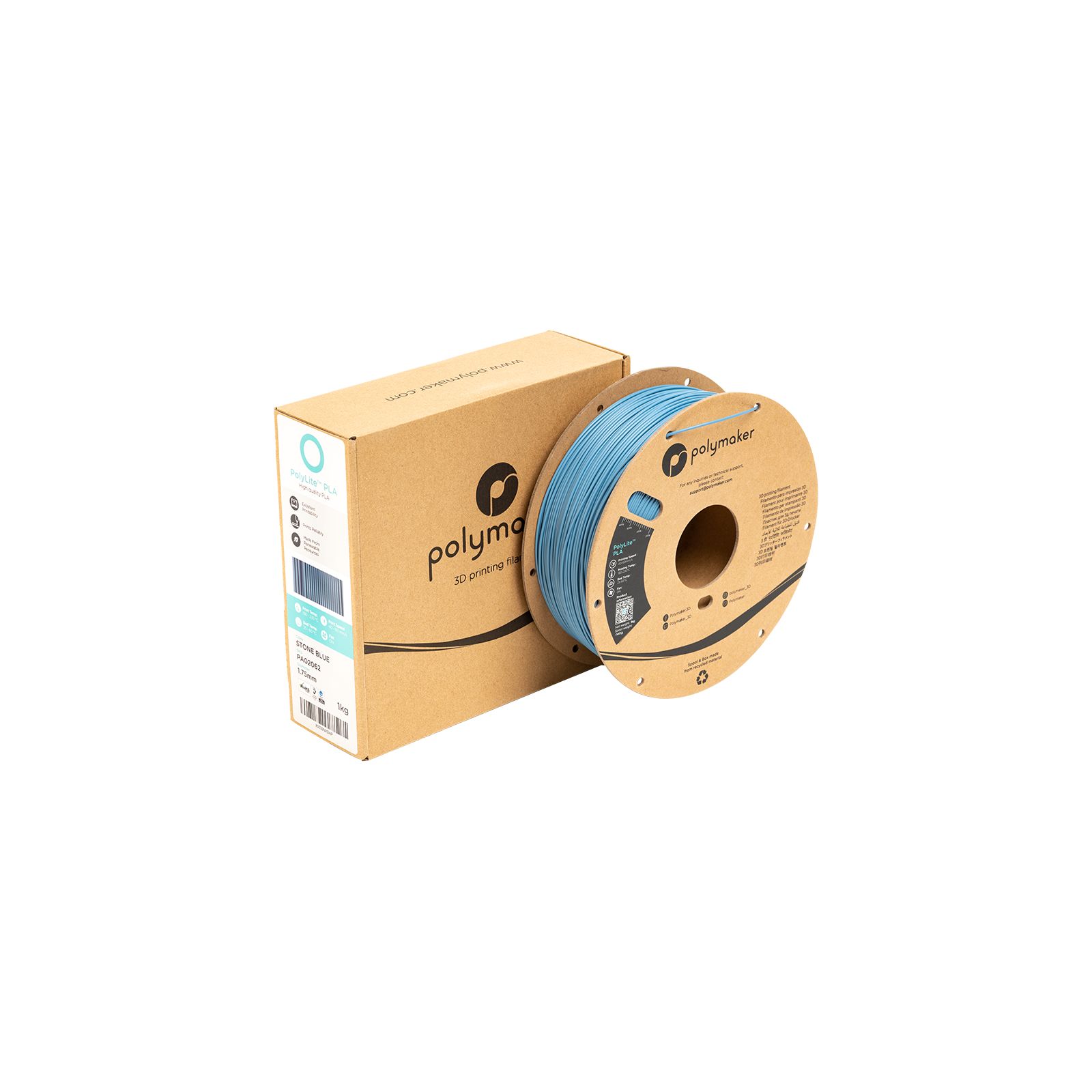 High quality level: Polymaker applies a complete and rigorous quality control process, ensuring consistently optimal quality of PolyLite PLA Stone Blue.