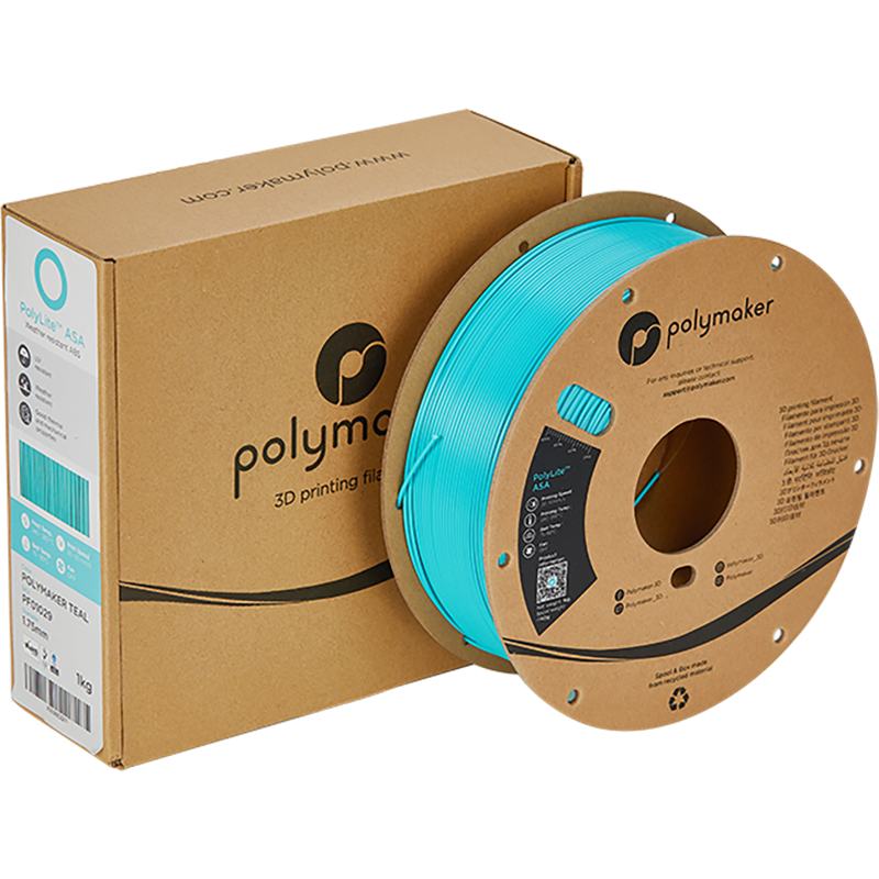 Polymaker Polylite ASA Polymaker Teal is a filament with excellent mechanical properties. UV resistant and capable of withstanding temperatures up to 105.3°C, it is ideal for outdoor applications.