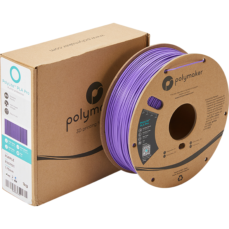 The PolyLite™ PLA Pro filament is a material that sits between two existing ranges of PLA from Polymaker. The PolyLite PLA Pro Dark Purple provides high impact resistance while combining the excellent rigidity of PLA and other properties of standard PLA.