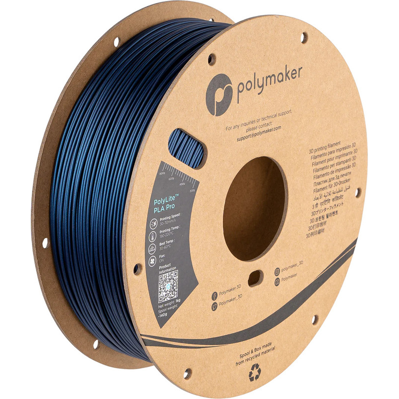 The PolyLite™ PLA Pro filament is a material that sits between two existing ranges of PLA from Polymaker. The PolyLite PLA Pro Metallic Blue provides high impact resistance while combining the excellent rigidity of PLA and other properties of standard PLA.