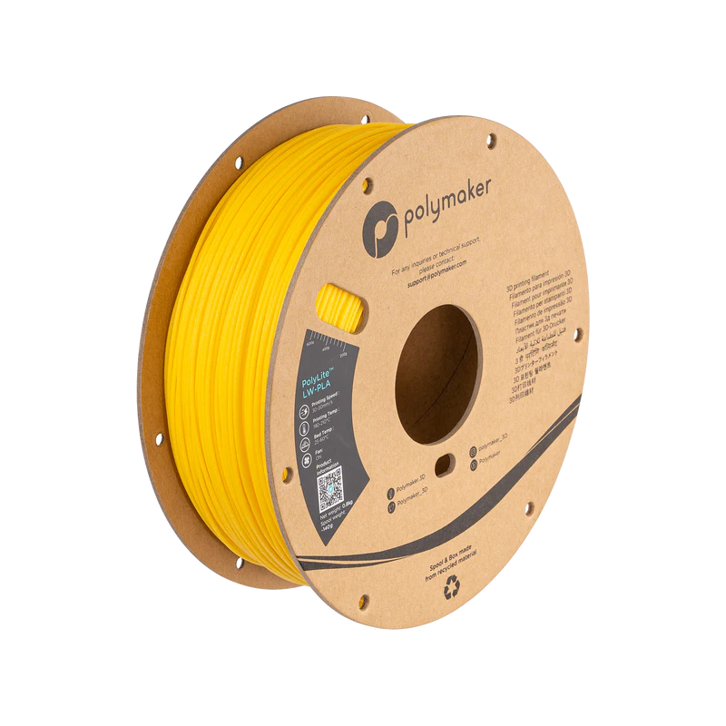 The PolyLite™ LW-PLA Yellow from Polymaker is a specially expanded PLA designed to be printed with similar settings to regular PLA but at half the weight and lower density.