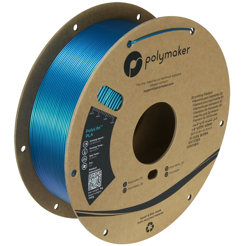 PolyLite PLA Starlight Neptune from Polymaker is easy to use, reliable, and affordable, making it an excellent choice for creating galactic-inspired artistic objects with shimmering tones. Enjoy the stunning light reflections that dance across your prints.