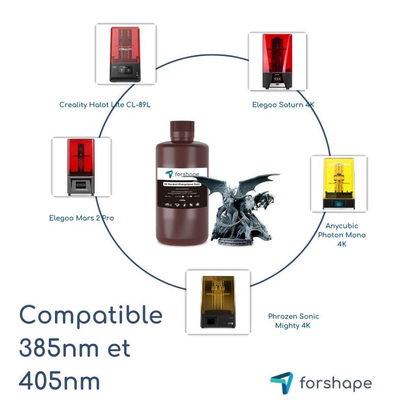 - Compatible avec toutes les imprimantes 4K/8K (385 et 405nm)