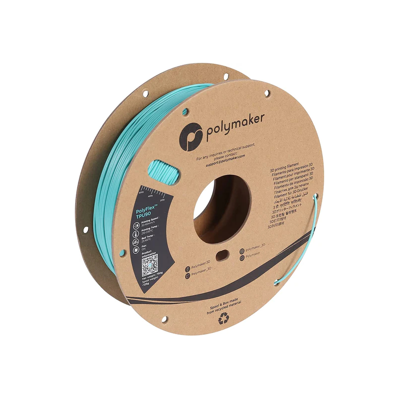 PolyFlex TPU90 Polymaker Teal is a high-quality, flexible and UV-resistant material in an elegant teal color. Easy to print and durable.