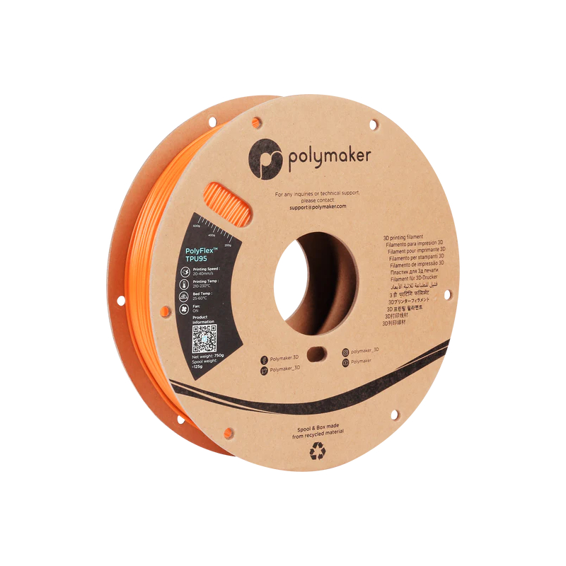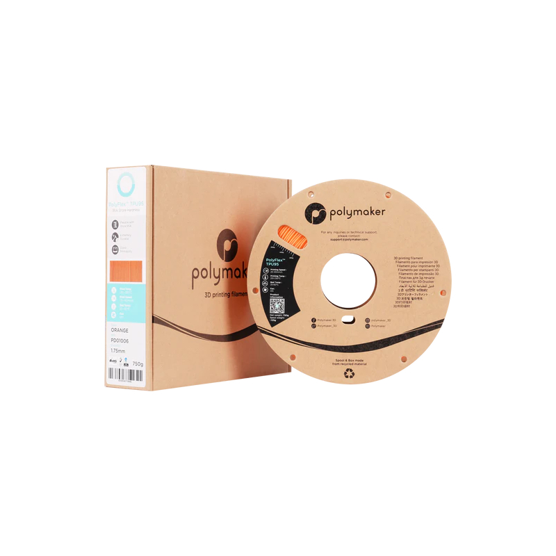Polymaker Polyflex TPU-95A Orange is a highly flexible filament. Polymaker Polyflex features great elasticity and excellent tensile strength for a variety of applications.