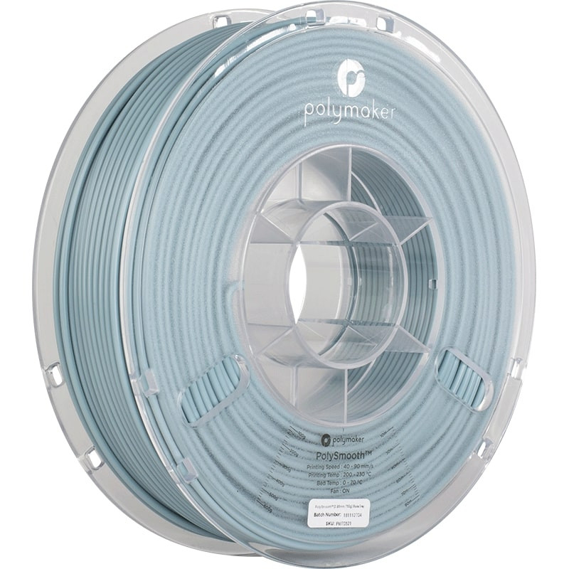 Polymaker’s Black PolySmooth prints at an extrusion temperature between 190 and 220°C, a bed temperature between 25 and 70°C, and a speed of 40 to 60mm/s. A BuildTak surface, glue stick, or tape is recommended for optimal bed adhesion.