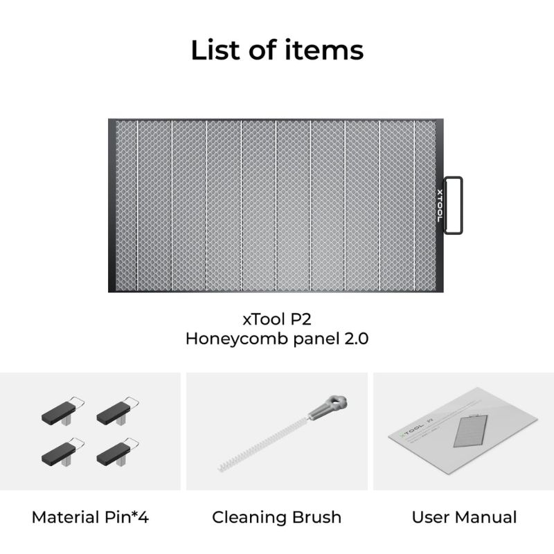 The xTool P2, P2S honeycomb panel is an essential accessory for optimizing laser cutting with the xTool P2, P2S machine. Its honeycomb structure promotes efficient heat dissipation, reducing the risk of burns or unwanted marks on your materials.