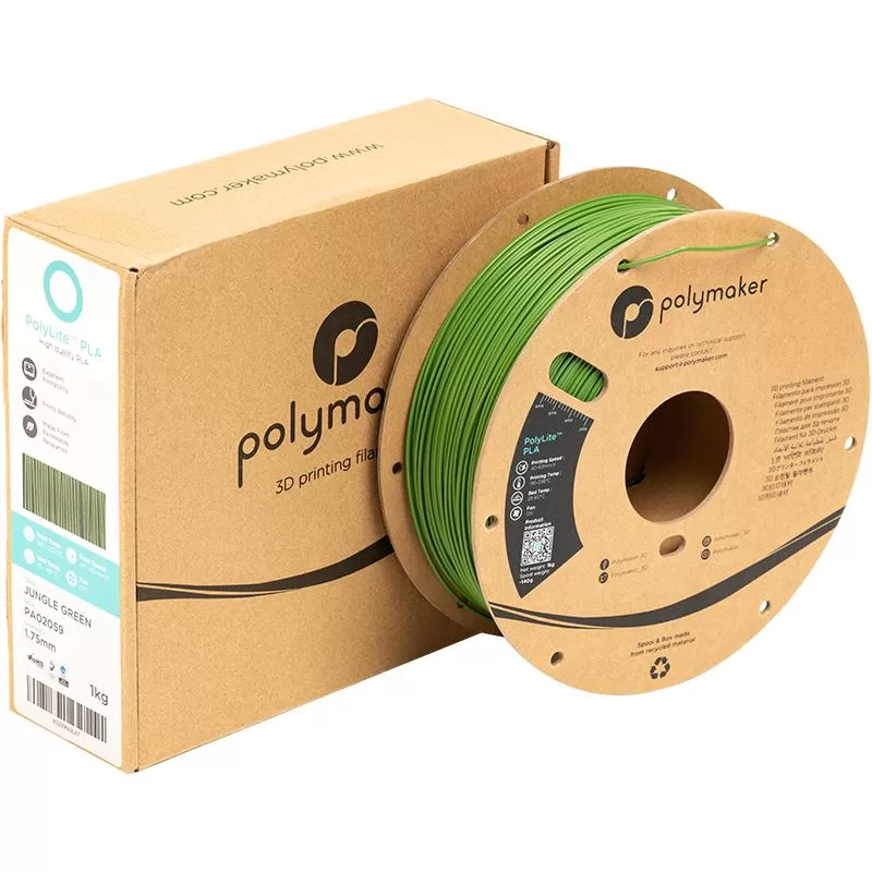Polymaker's PolyLite PLA Jungle Green is a PLA offering exceptional quality and high reliability in 3D printing at an attractive price.