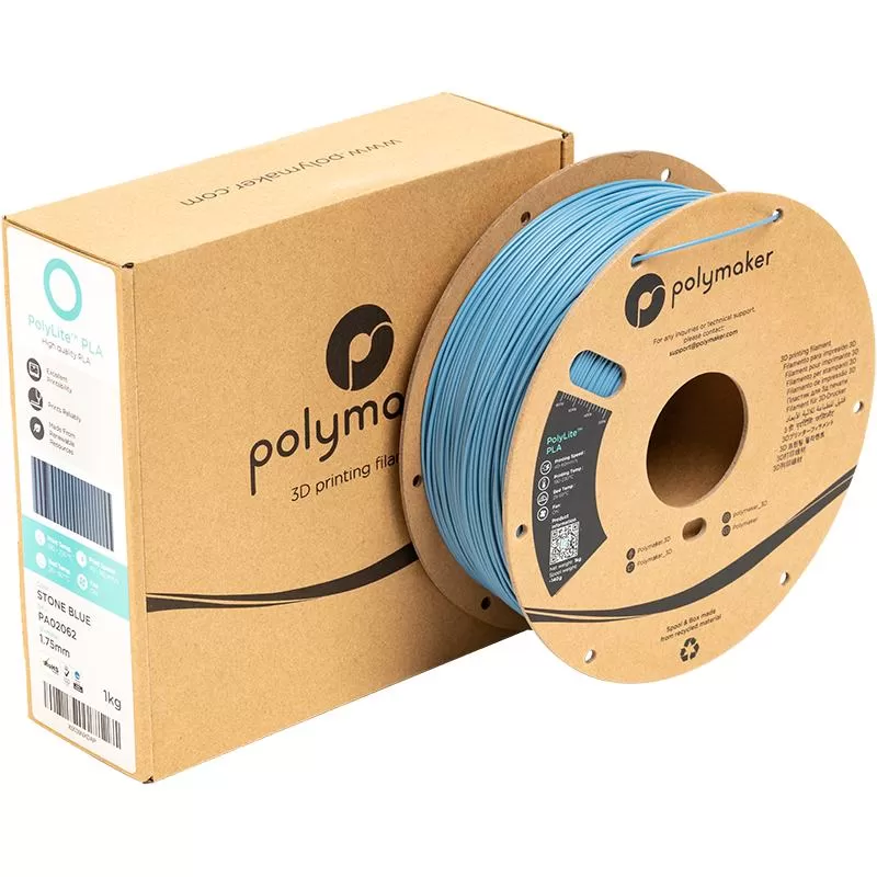 Polymaker's PolyLite PLA Stone Blue is a PLA offering exceptional quality and high reliability in 3D printing at an attractive price.