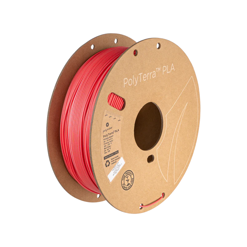 The eco-friendly PLA filament PolyTerra Pink Red was developed by Polymaker with a technique called "Fully Bio Compound (FBC)", which is a blend of PLA (a biodegradable polymer based on corn starch, beet, and wheat) and organic minerals.
