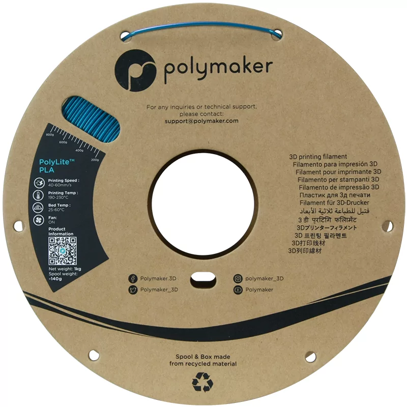 Origin: Like most PLA filaments, PolyLite PLA Starlight Neptune is plant-based and biodegradable.