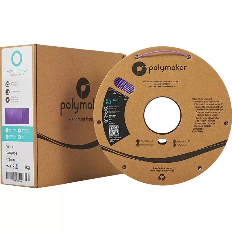 Polymaker's PolyLite PLA Purple is a PLA offering exceptional quality and high reliability in 3D printing at an attractive price.
