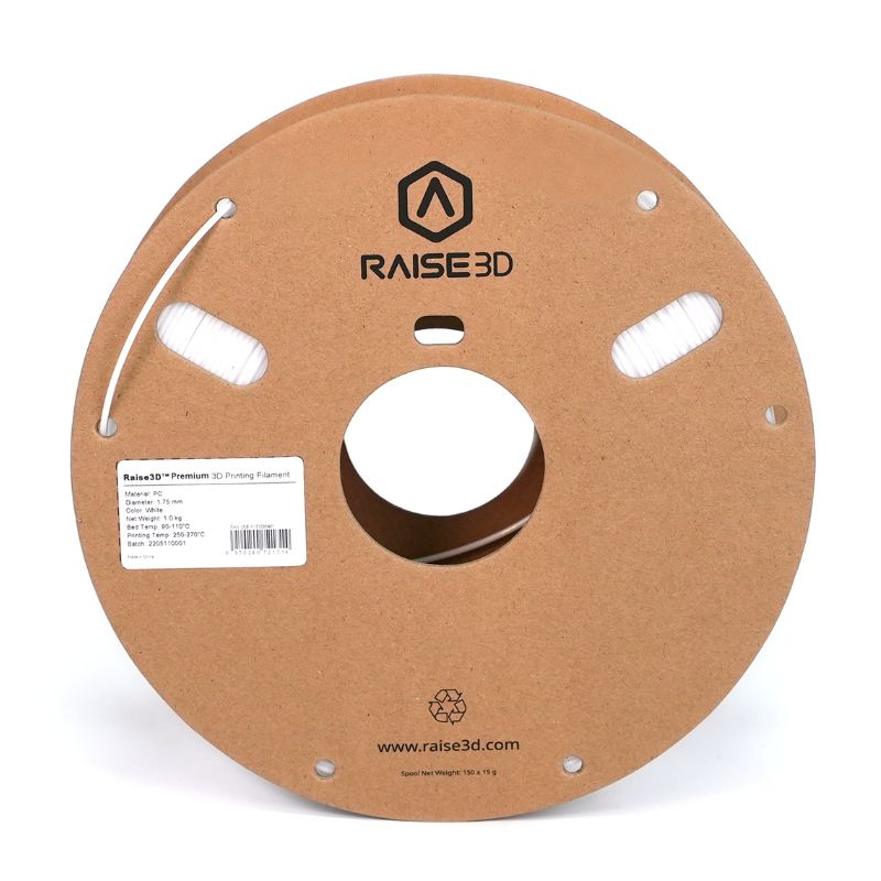 Durable: the Raise3D Premium PC White filament offers higher strength to ensure excellent durability of your parts.
