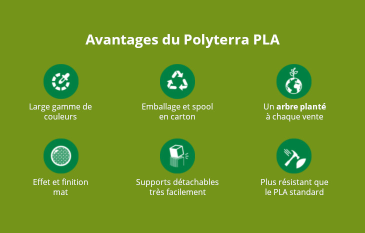 Eco-responsibility: the manufacturer Polymaker has made a commitment via the ONETREEPLANTED association to plant a tree for each spool of PolyTerra sold.