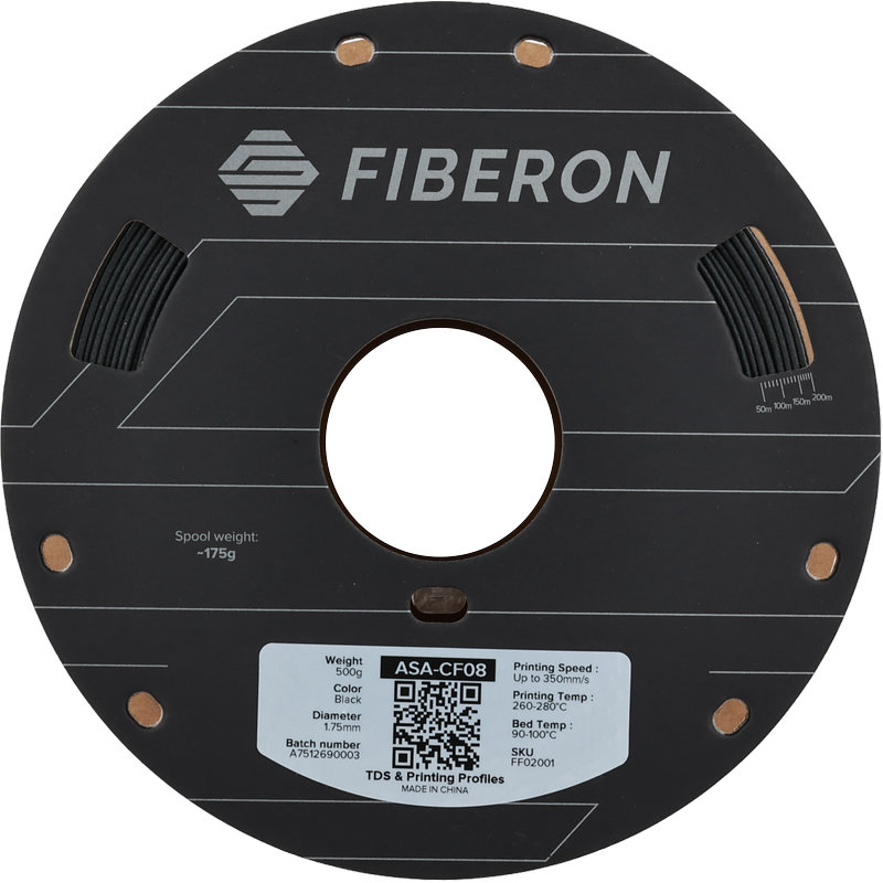 The Polymaker Fiberon™ ASA-CF08 is a technical filament based on ASA (Acrylonitrile Styrene Acrylate) enriched with 8% carbon fibers. This combination gives the material a significantly higher rigidity than a standard ASA, while improving its dimensional stability. Its resistance to outdoor conditions, particularly against UV and weather, makes it particularly suitable for demanding environments.