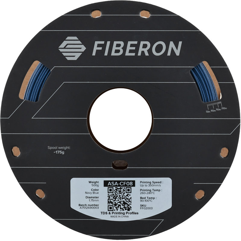 Specifications for Polymaker Fiberon™ ASA-CF08 Navy Blue - 1,75mm - 500g
