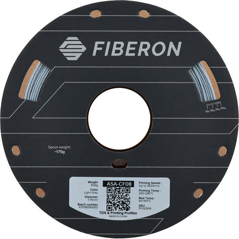 The Polymaker Fiberon™ ASA-CF08 Light Grey 1.75mm 500g is a high-performance composite filament, reinforced with 8% carbon fiber. Designed for functional parts, it combines rigidity, dimensional precision, and excellent UV resistance.