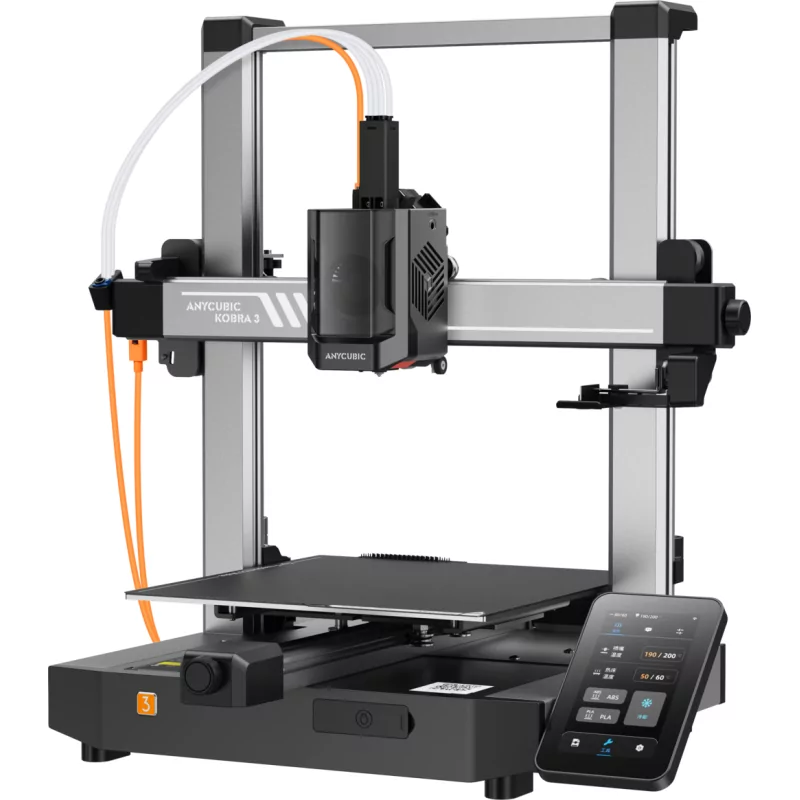 TheAnycubic Kobra 3 offers a print volume of 250 x 250 x 260 mm and an impressive print speed of up to 600 mm/s. With superior temperature control, it can handle a wide range of filament types, enabling sophisticated, industrial-grade printing projects. The printer is compatible with the ACE Pro (purchased separately or included when you buy the combo version), so you can print in multiple colours.