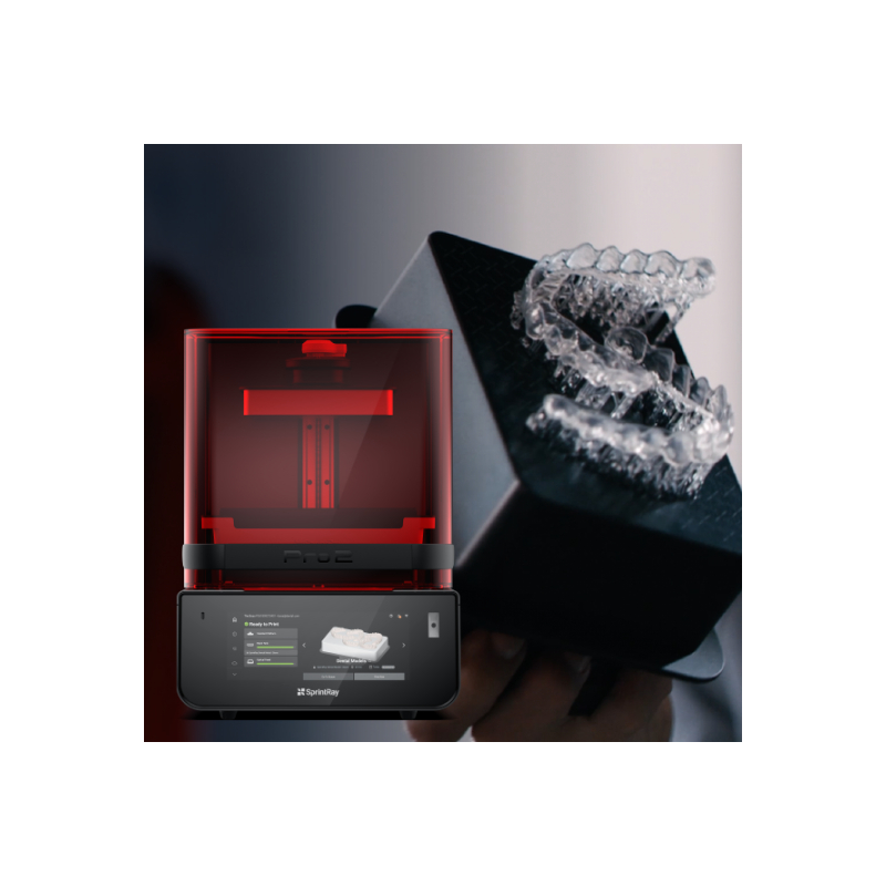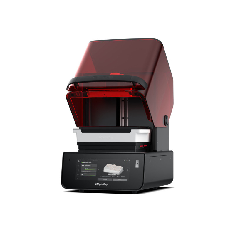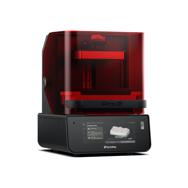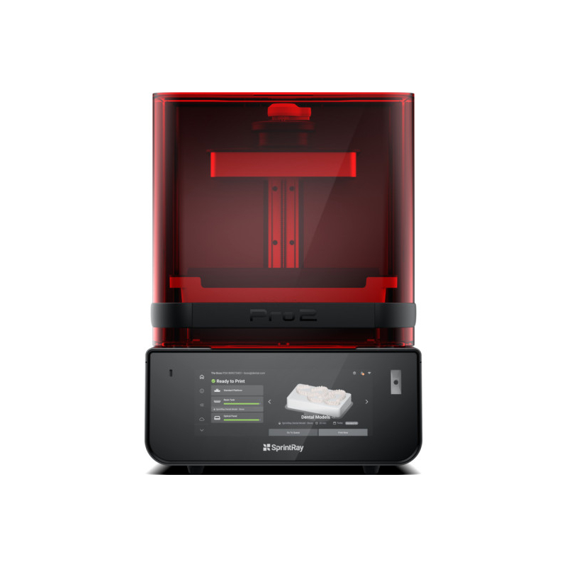 The SprintRay Pro 2 is a cutting-edge dental 3D printer offering remarkable precision thanks to its 35 µm optical technology and its UV-A light engine of 385 nm.