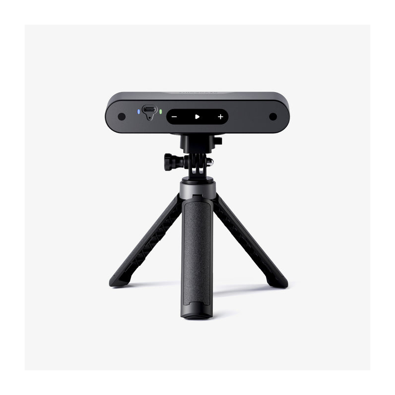 Le scanner POP 3 a été soigneusement pensé pour une utilisation aisée. Grâce à l'incorporation de trois boutons tactiles, vous pouvez démarrer ou mettre en pause les numérisations et ajuster l'exposition de la caméra de profondeur en cours de route, offrant ainsi un contrôle précis de votre processus de numérisation.