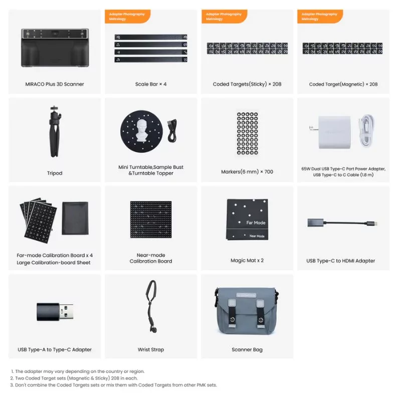 The Revopoint MIRACO Plus stands out for its scanning precision of up to 0.04 mm and photogrammetric accuracy of 0.02 mm + 0.05 mm x L (m), making it an ideal choice for metrology applications. Its 2x infrared optical zoom enhances fine detail capture, while its 48 MP RGB camera ensures high-definition textures.