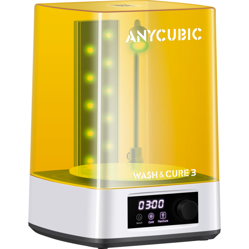 The Anycubic Wash & Cure 3 is the perfect two-step solution for post-processing resin prints. With a 3-liter washing capacity, this powerful device is ideal for LCD printers of 7.3 inches or smaller.
