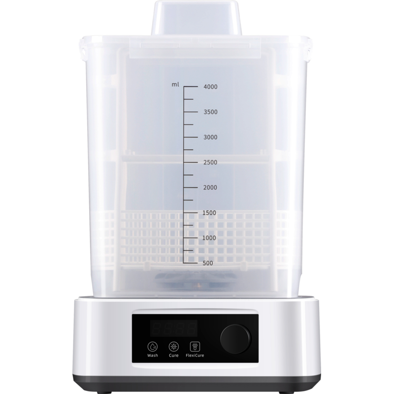 Compared to the previous Wash & Cure 2, the Wash & Cure 3 features a doubled washing capacity of 3 liters, a total washing basket volume of 4 liters, and an increased curing size of 15% to 160 x 180 mm, allowing for the treatment of larger models or multiple small objects at once.