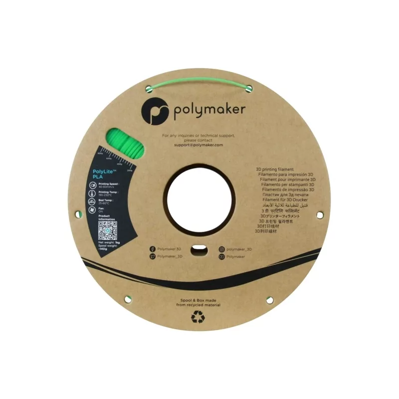 Specifications for Polylite PLA Temperature Color Change - Green Lime - 1.75mm - 1kg