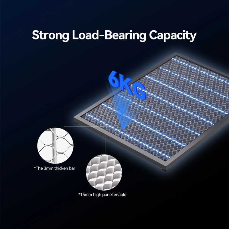 The Creality Honeycomb Panel is specially designed for Falcon A1 and Falcon A1 Pro to provide a stable and durable work surface for your laser engraving and cutting projects. Its metal honeycomb structure promotes heat dissipation and reduces light reflections, minimizing burn marks and discoloration on your materials.