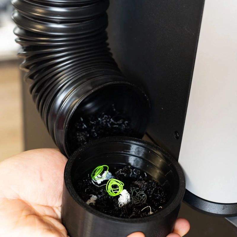 Filament residues are efficiently collected in the flexible air duct included in the kit. To clean and remove accumulated waste, simply unscrew the tube. This practical design simplifies maintenance while keeping the workspace clean and safe during 3D printing with Bambu Lab H2 printers.
