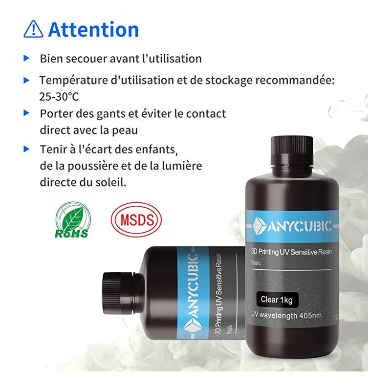 Compatible with most LCD 3D printers (385 nm and 405 nm), it enables fast and fluid printing thanks to its excellent liquidity. Its optimized formulation reduces deformation and ensures perfect layer adhesion, resulting in durable and well-defined models.