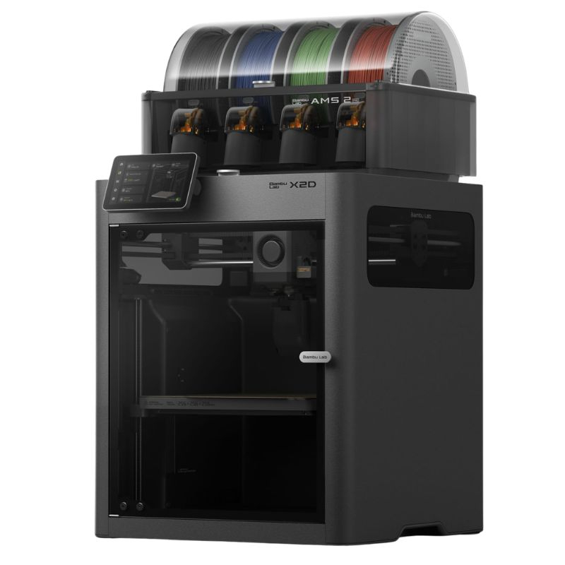 The Bambu Lab X2D Combo represents a significant evolution of the X series thanks to its dual-nozzle configuration and the integration of the AMS 2 Pro, enabling advanced multi-colour and multi-material management. Designed for demanding users, it combines performance, automation and precision.