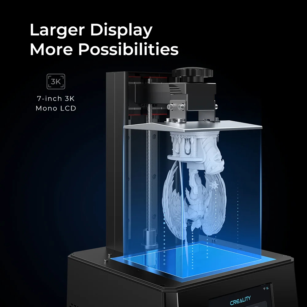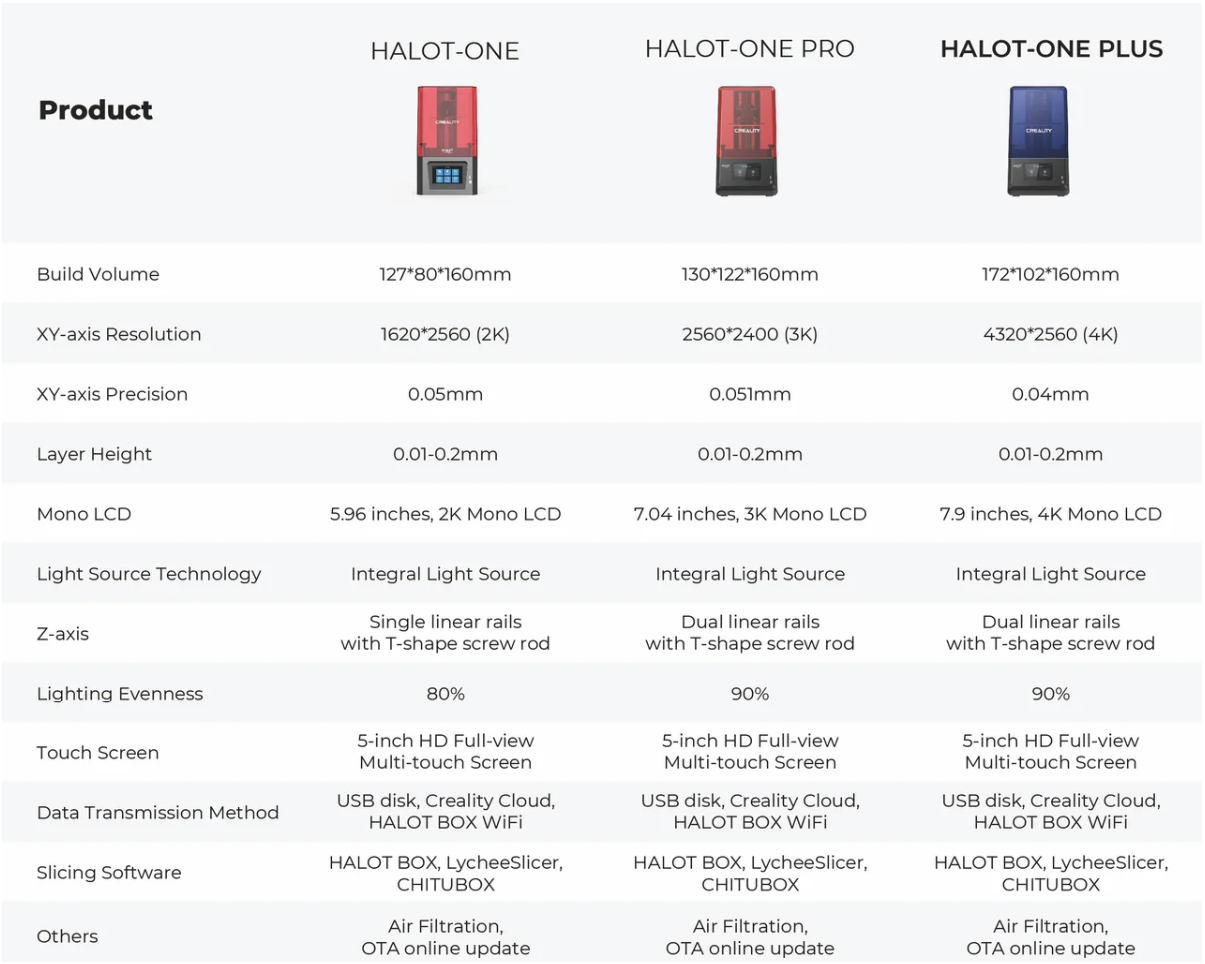 The Creality Halot-One Pro is a new-generation resin 3D printer with a 7-inch LCD 3K Monochrome screen and ultra-high printing precision in a small, affordable format.