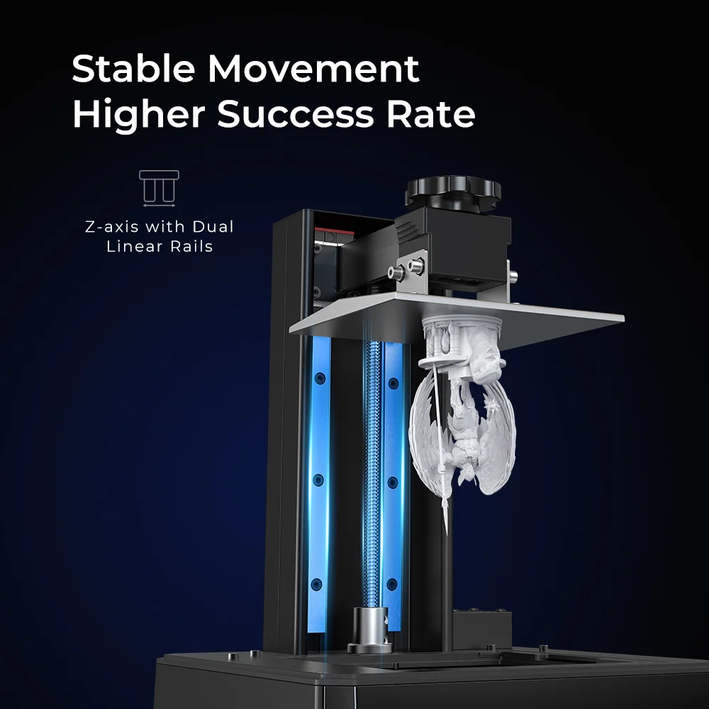 The Halot One Pro features the latest generation of light source technology from Creality, including a reflection-based system. This feature provides better light with greater precision than ever before. It also features a double rail with linear guidance and a 3K screen for high-precision printed parts.