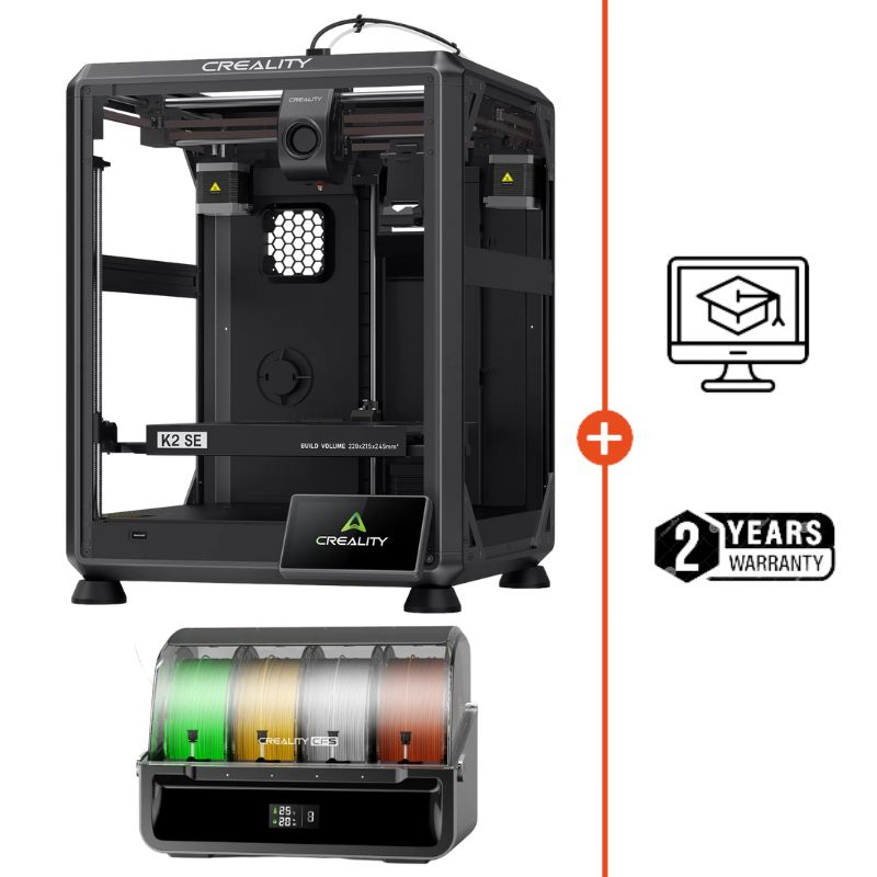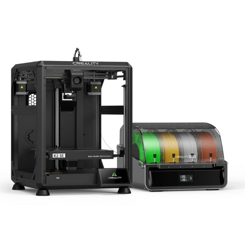 The Creality K2 SE Combo is perfect for makers and creators looking to explore multicolor and multi-material printing. Its CFS system allows handling of 4 filaments simultaneously and up to 16 colors by combining multiple modules.