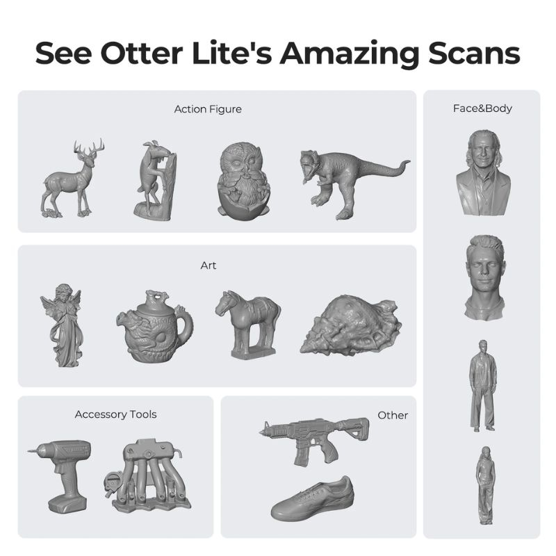 The Creality Otter Lite Basic is the wired version of the renowned Otter Lite, providing the same professional 3D scanning quality without wireless mobility. Designed for users seeking a stable and continuous connection, it captures small to large objects with up to 0.05 mm accuracy, directly usable for 3D printing.
