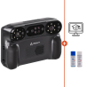 Operates independently thanks to an integrated HD screen and interchangeable batteries.