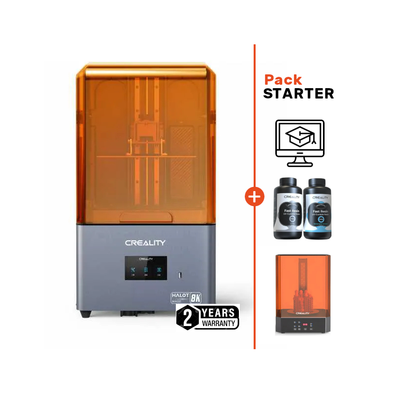 The Start Pack Creality Halot-Mage allows you to start serenely with all the essential equipment as well as high-speed resins and a post-processing station included to carry out your first prints.
