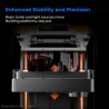 The light source and resin vat move while the platform remains fixed: a configuration that eliminates vibration and Z-wobble artifacts, ensuring stability and consistent print quality.