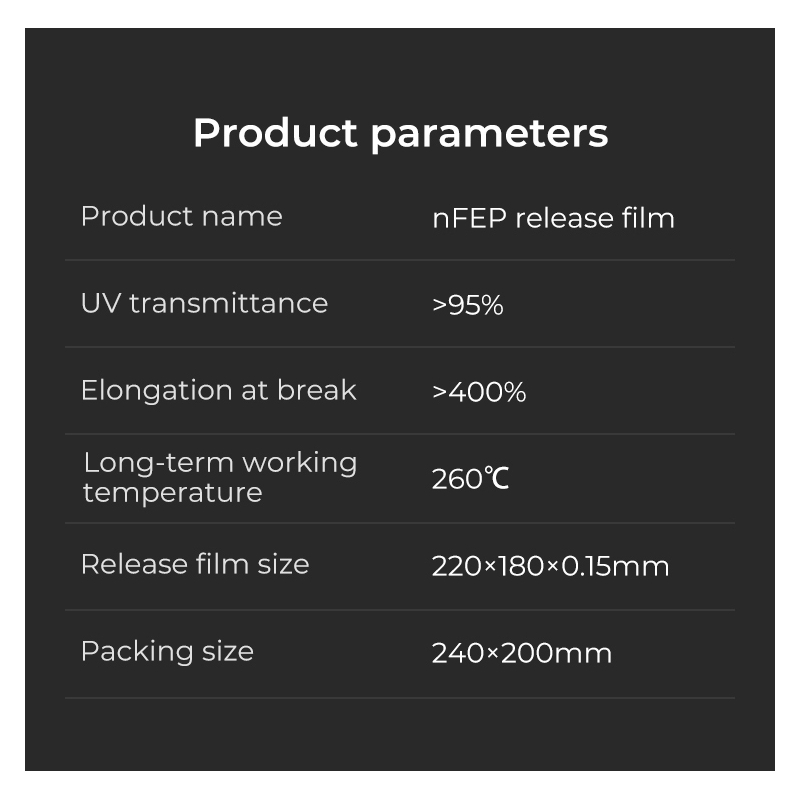 Specifications for nFEP film 297x210x0.15mm Creality