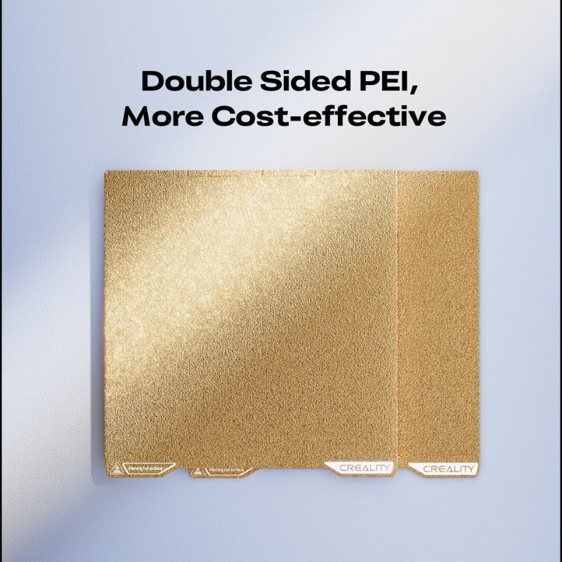 The Double-Sided Frosted PEI Build Plate for Creality K2 combines performance and durability. Its double-sided coating ensures optimal adhesion and perfect flatness, providing stable and precise 3D prints on various materials.