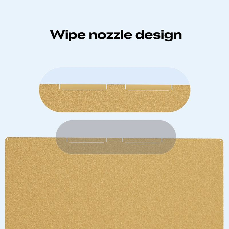 The plate also features a "wipe nozzle" design that cleans nozzle residues before printing, ensuring a clean and uniform first layer.