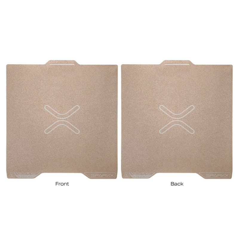 The double-sided textured PEI build plate for Creality SPARKX i7 is designed to provide excellent adhesion and high durability. Its golden double-textured surface ensures reliable printing on both sides, improving productivity.