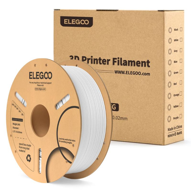 Made from high-quality PLA, a commonly used thermoplastic material, PLA Elegoo White stands out for its low melting temperature, ease of use, minimal deformation and shrinkage, no odors during printing, and a smooth, glossy surface finish.