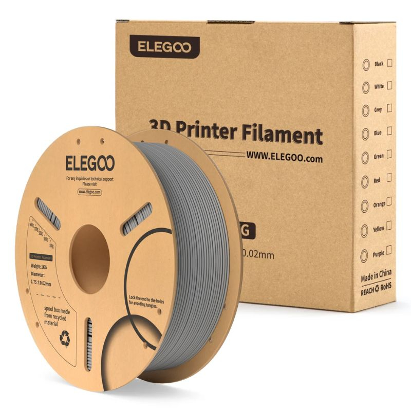 The ELEGOO PLA Grey filament is a high-quality PLA.