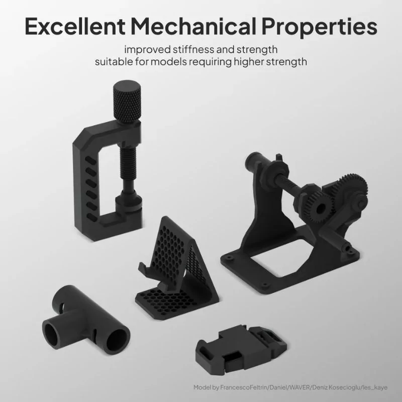 Thanks to its carbon fiber reinforcement, it is particularly suitable for structural and engineering applications supporting heavy loads. Its smooth finish and ability to mask layer lines also make it ideal for high-end display pieces and artistic projects.