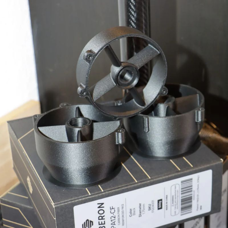 The Polymaker Fiberon™ PA12-CF10 is a high-performance filament that combines nylon PA12 with 10% carbon fibers, ensuring high rigidity and a significant reduction in the weight of printed parts. Thanks to its low moisture sensitivity (compared to other nylons), this material ensures a more stable printing process and preserves its mechanical properties over time. It is particularly suitable for demanding industrial environments such as engineering, automotive, and aerospace.