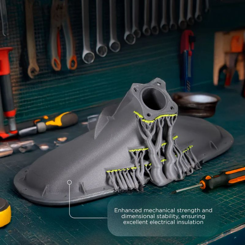 This filament also stands out for its low moisture absorption, ensuring stable and consistent printing. It can be a cost‑effective, high‑performance alternative to premium materials like PEEK or ULTEM, while remaining accessible to high‑temperature industrial printers.
