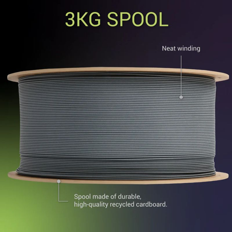 3 kg spool, 1.75 mm filament diameter. Grey color.