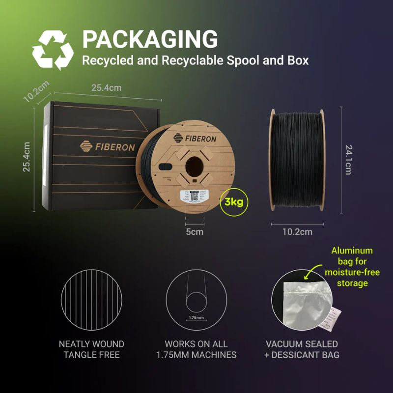 The Polymaker Fiberon™ PET-GF15 Black (1.75 mm - 3 kg) is a high-performance material reinforced with 15% glass fibers. It combines the characteristics of PET with glass fibers, providing excellent thermal (up to 133.7 °C), chemical, and mechanical resistance.